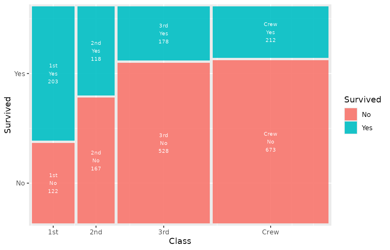 geom_marimekko(aes(fill = Survived, weight = Freq),