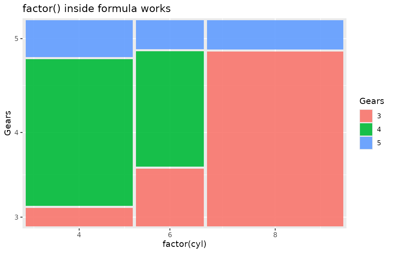 geom_marimekko(formula = ~ factor(cyl) | factor(gear)) +
