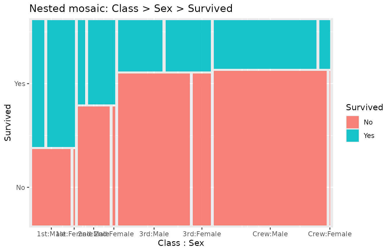 labs(title = "Nested mosaic: Class > Sex > Survived")