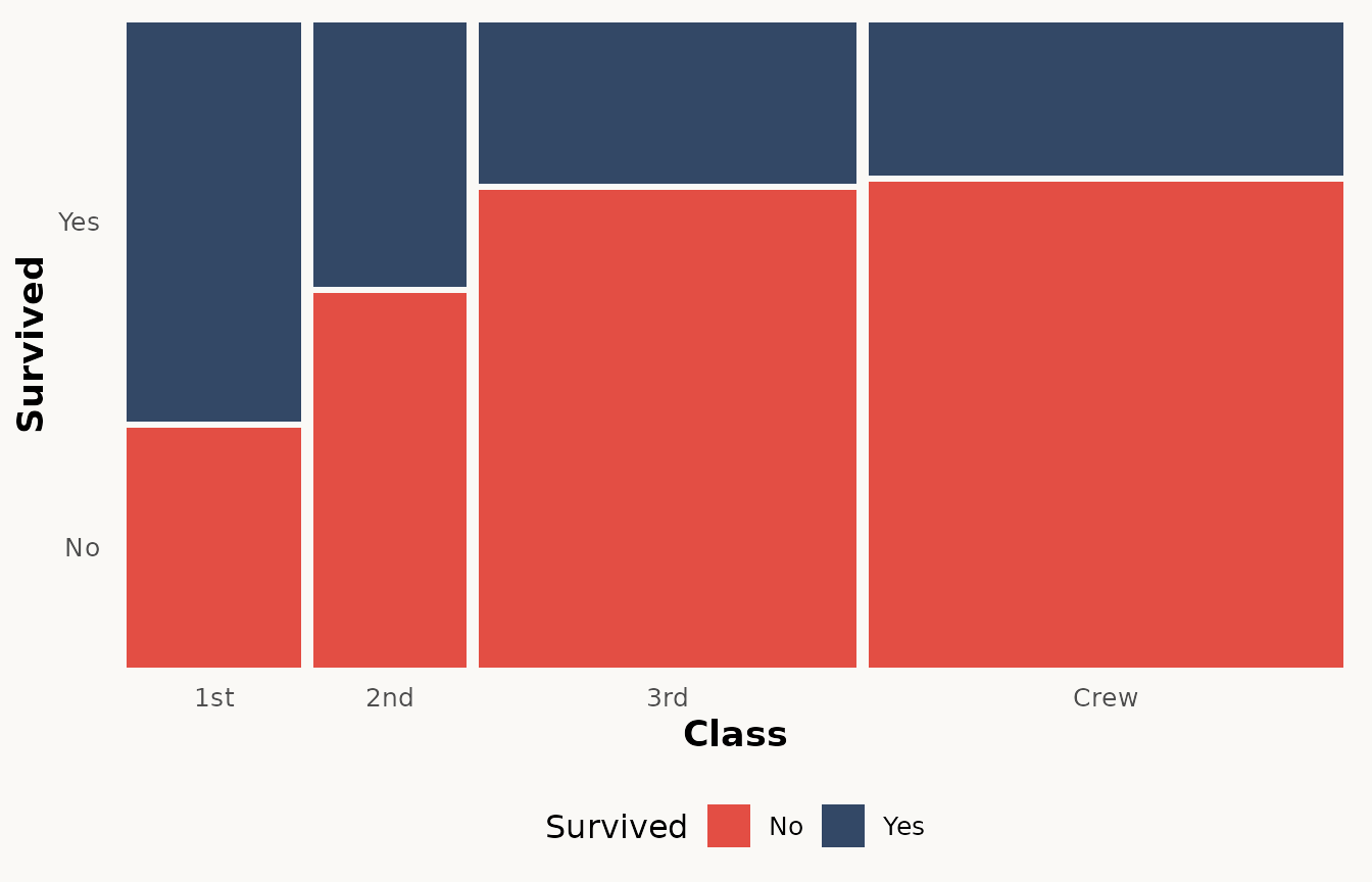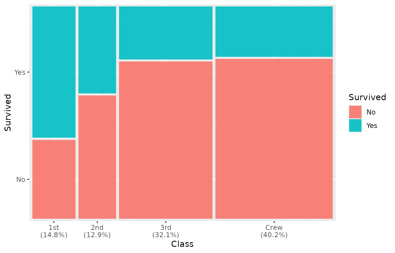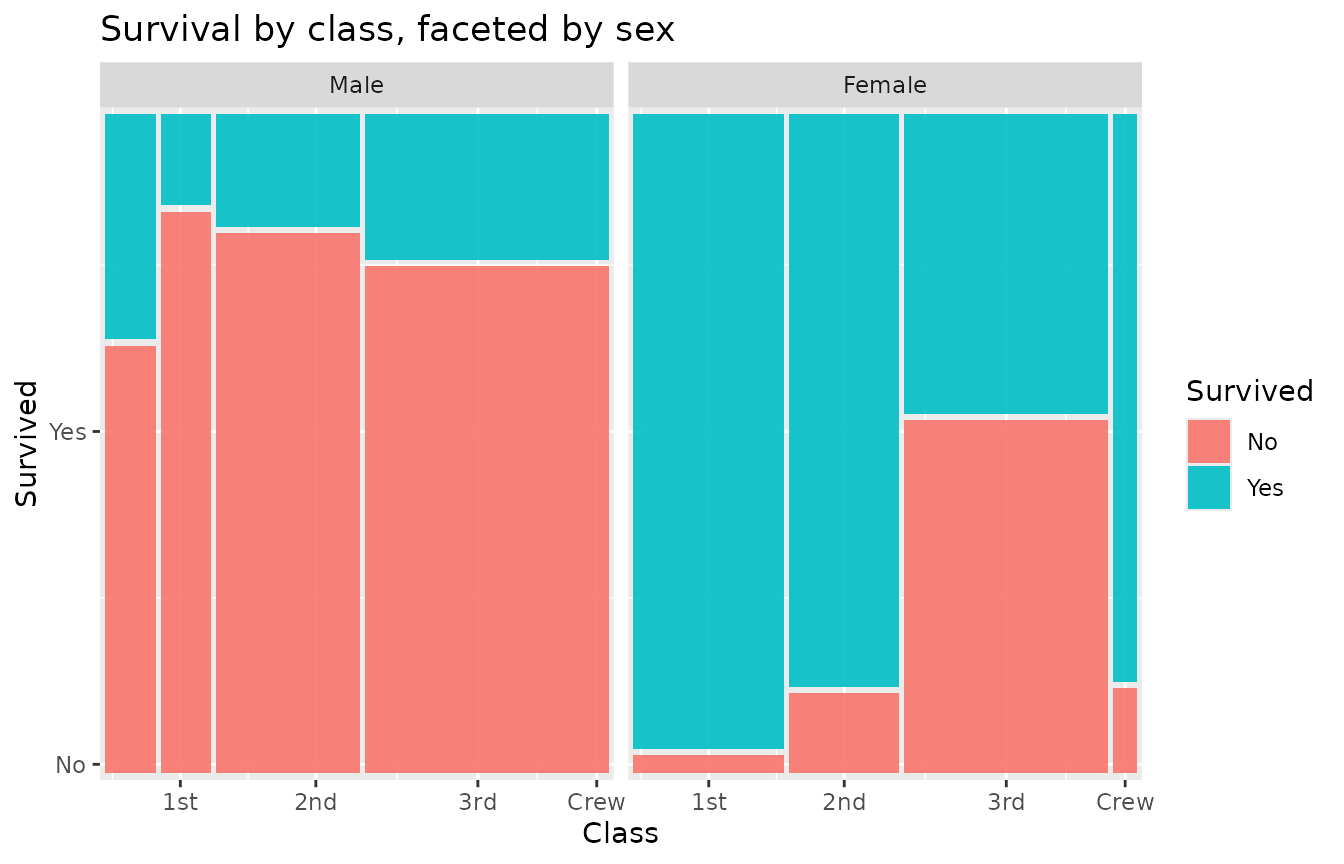 geom_marimekko(aes(fill = Survived, weight = Freq),
